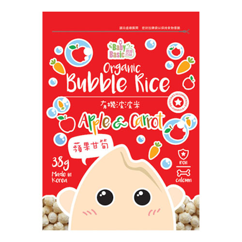 Ingredients: Organic brown rice, apple carrot granules (organic rice, organic carrot powder, organic apple juice, organic glutinous rice, apple extract), organic rice, purified water, vitamin E, mixed minerals, iron.