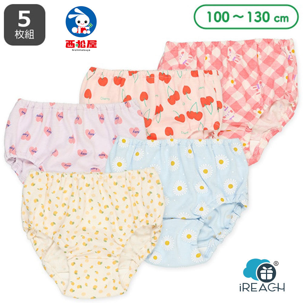 西松屋女孩內褲(檸檬、花朵、心形、櫻桃、格子)5件裝
