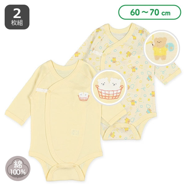 西松屋嬰兒彈力長袖連體衣包屁衣純棉內衣 綿100%繪畫小熊 2枚組