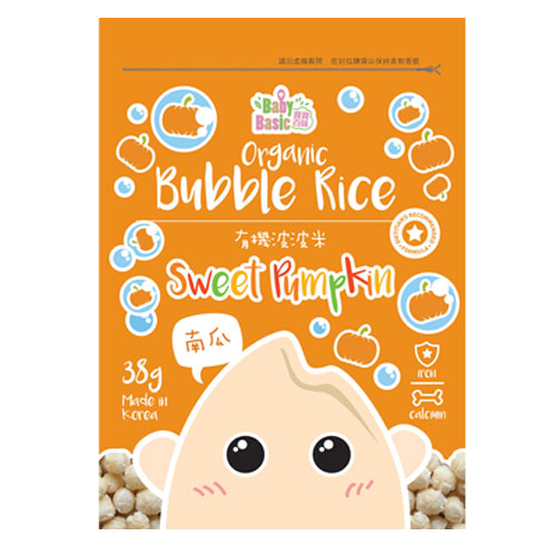 成份: 有機糙米、南瓜顆粒 (有機米、有機南瓜粉、純淨水、有機糯米)、有機米、純淨水、維他命E、綜合礦物質、鐵