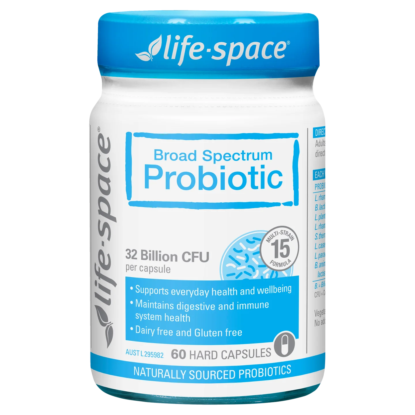 消化系統的微生物群包含多種細菌物種。Life-Space廣效護腸益生菌含有15種有益細菌菌株,支持健康的消化系統。