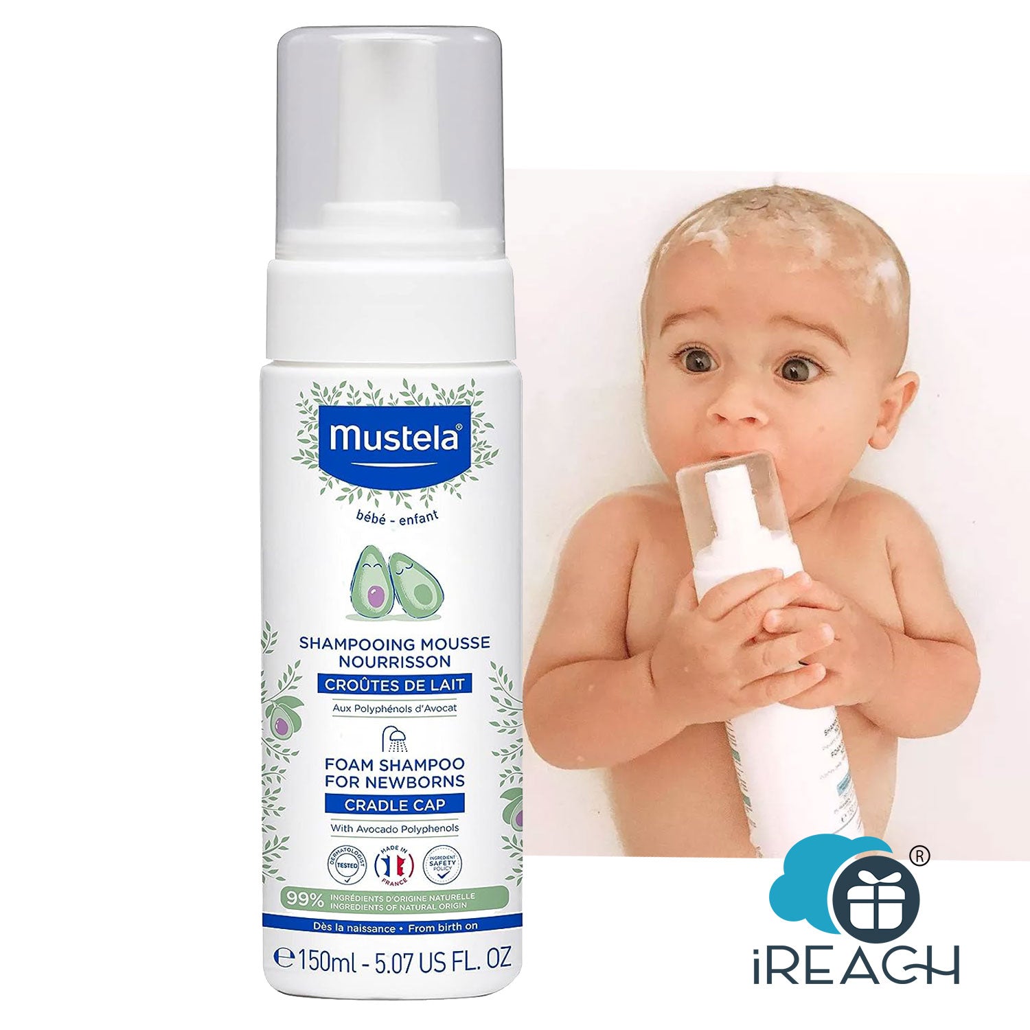 Mustela新生嬰兒頭皮屑泡沫洗髮水 - 具天然酪梨成分的嬰兒洗髮水 - 無淚配方及無香料