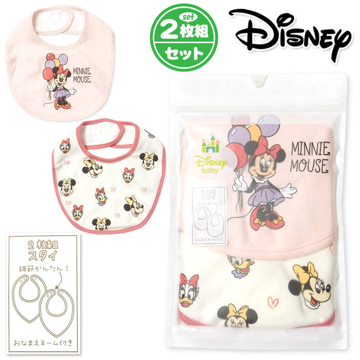 這套可愛的2片組非常適合女寶寶,上面印有迷人的米妮老鼠圖案。圍兜採用了牢固的按扣設計,可調節兩個檔位,非常方便。材質使用100%純棉,柔軟舒適。這套組合有兩個圍兜,非常適合更換使用。