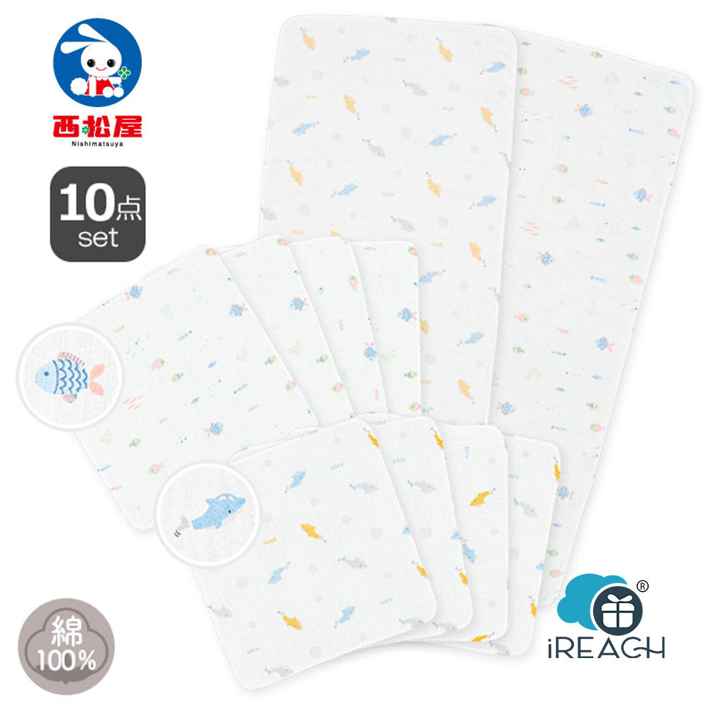 西松屋ElFinDoll嬰兒薄紗浴布+手帕10件套裝 海洋生物