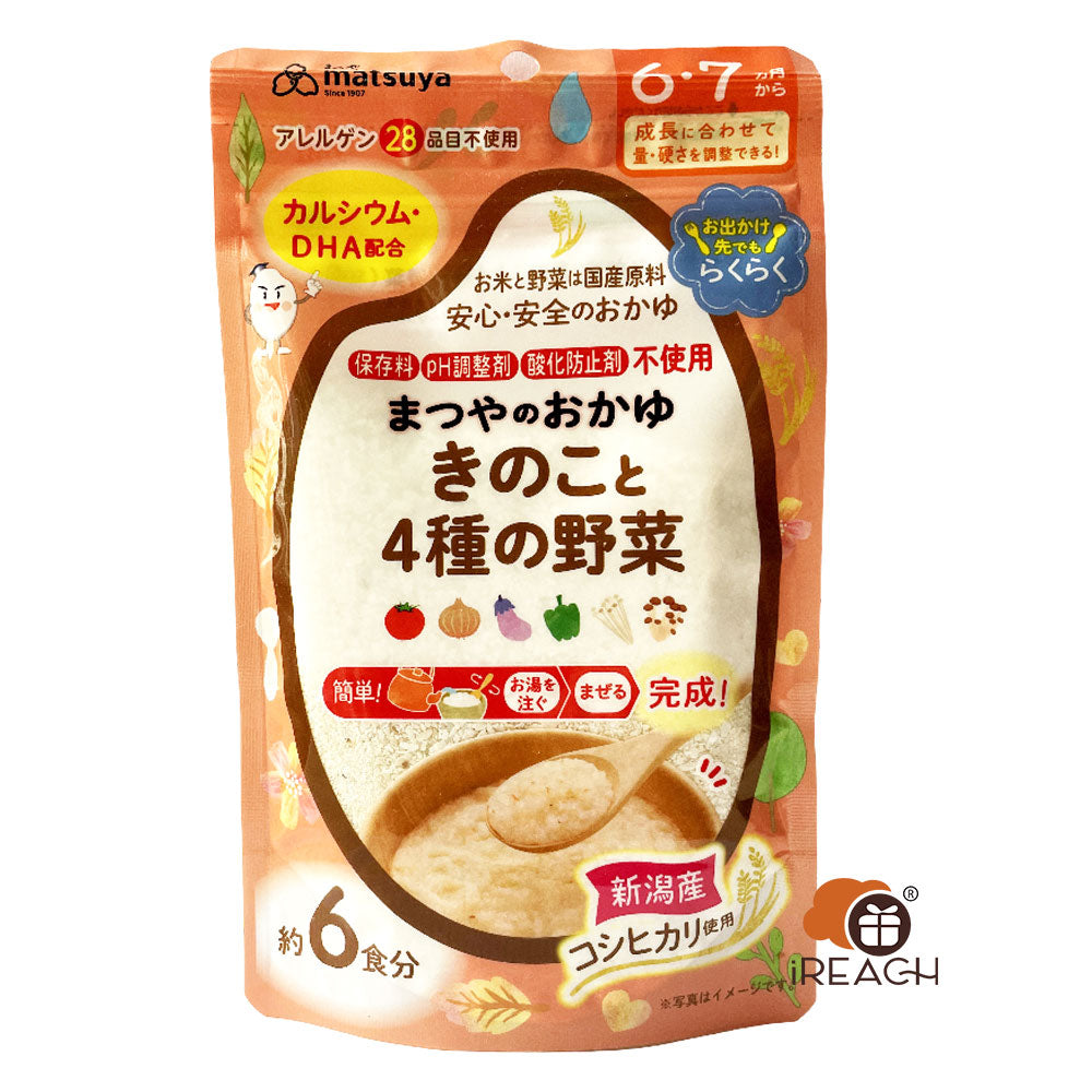 松屋的「新潟越光米粥系列」是根據母親們的調查意見而開發的。主要成分新潟的越光米是通過合約種植方式生產的。由精心挑選的食材和美味的水煮成的粥,保留了其風味和營養價值。所有產品都添加了DHA1和鈣2,以支持嬰兒的成長。